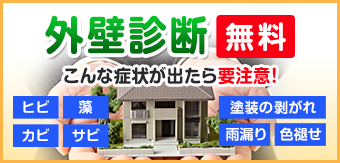 当社では、見積もりの前に無料の外壁診断を行うことで外壁の劣化具合や破損部分といった家の状態を詳しくチェックさせていただいております。