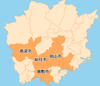 岡山市 倉敷市 総社市 高梁市 浅口市 都窪郡早島町