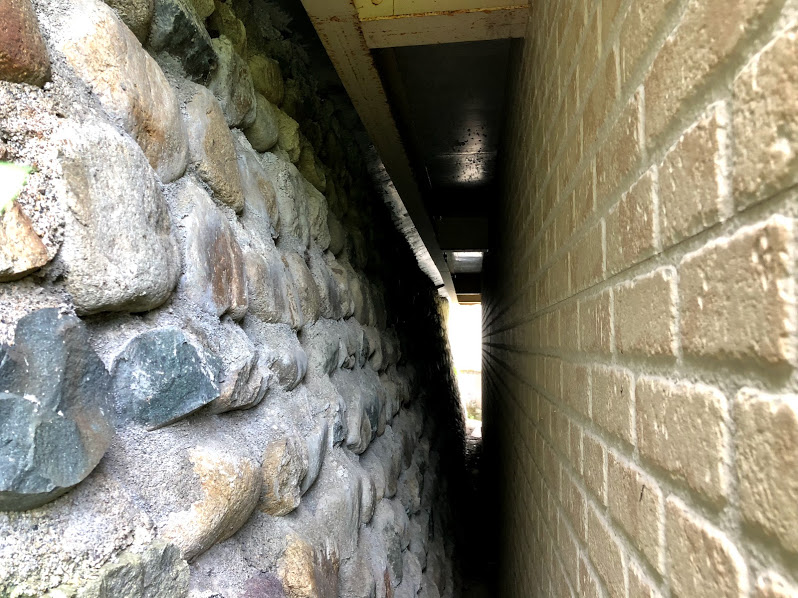 地下の土留め部分は隙間がかなり空いていました(5cmほど)古いコーキング撤去・打ち替え