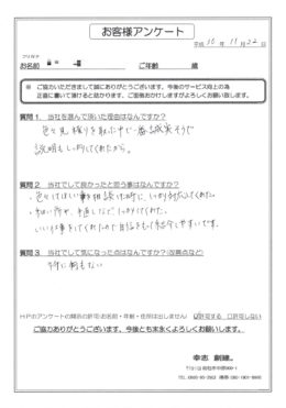 色々見積もりを取った中で一番誠実そうで、説明もしっかりしてくれたから