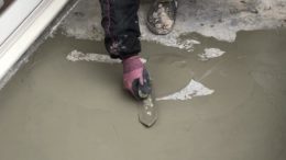 下地の凹凸調整はカチオンで均していきます、勾配に気を付けながら均等に均していきます