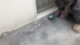初めにサンダーなどで凹凸研磨をします