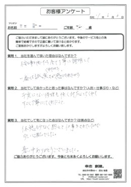 予定にない修理も快く対応してくれて、すごく丁寧にしてくれたこと
