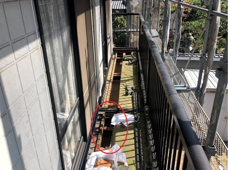 ベランダ床は当初歩くとフワフワしていたので、床が抜けなかったのが不思議でした。