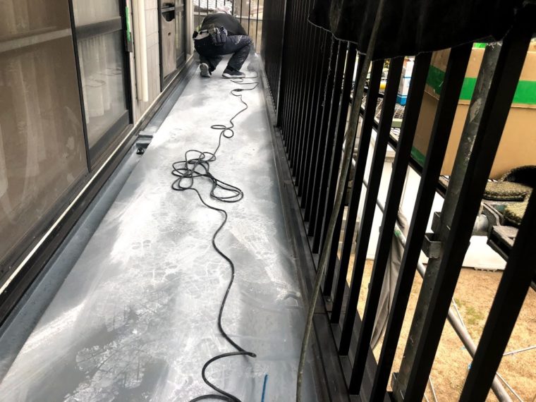 手摺側の外壁部分にも水が廻らないように防水をかけましたので大丈夫です!