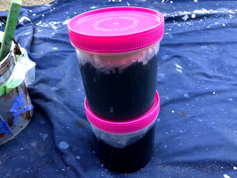 ⇧お渡しする際も、本当は塗料缶で保存するのが理想ですが、プラスチックの容器に入れて渡しています(-_-;)