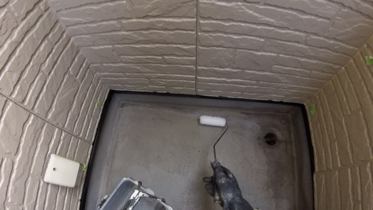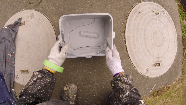今回のベランダ床はFRP素材なのでFRP専用の上塗り剤を使用しますが、その前に脱脂します。