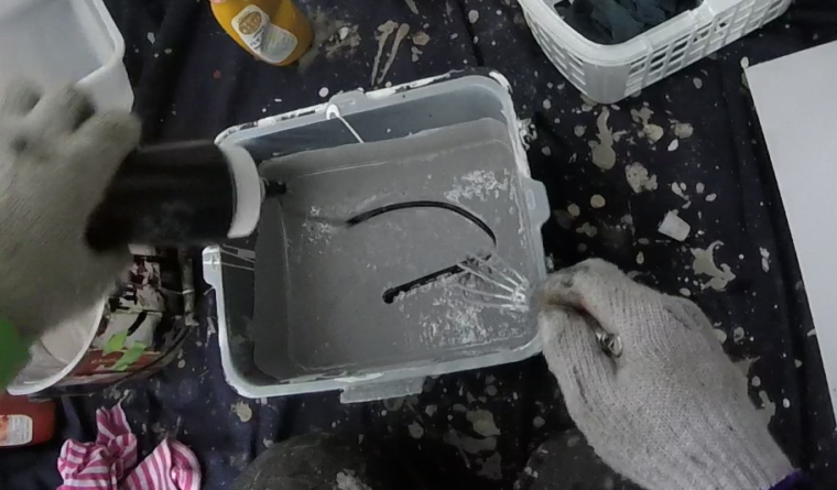 ⇧広い面はいつものようにローラーでコロコロ塗っています、塗料は防カビ材です。