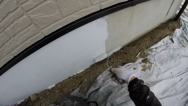 ⇧基礎の水切りも2回塗りで仕上げましたが、艶が上がらない箇所には3回ぬりました。