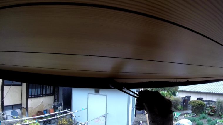 ⇧今回は部分的に軒天の張替えをして、大工さんが終わってからの塗装だったのでまずは、胴縁から塗っていきます、ここは軒天を張り替えたので軒天にペンキを付けないように気を付けて(*^-^*)