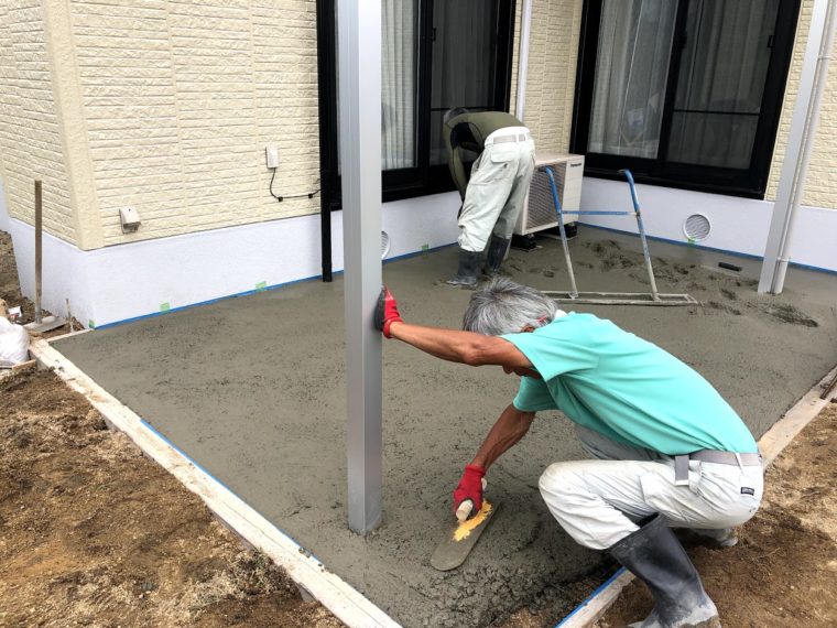 テラスの設置やコンクリート打ちは本業ではないのですが、私のスタッフの身内が外構工事などをしているので、お客様よりご依頼があった場合にお受けするようにしています(*^-^*)