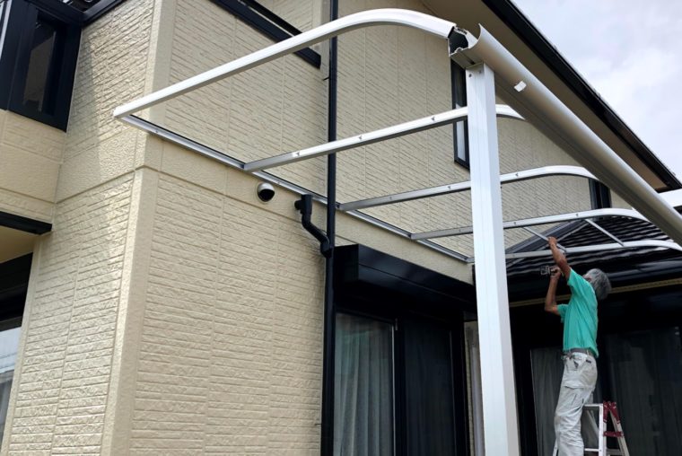 今回はテラス設置は屋根の取り付け位置が家の構造上、高い位置になりましたので柱もロングの柱に付けました。