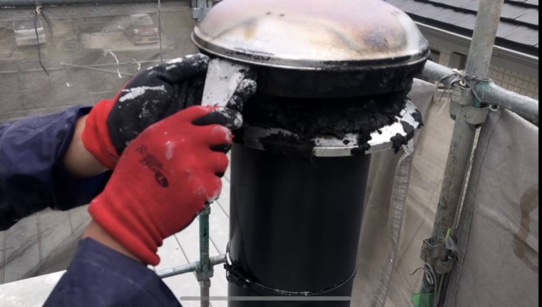 ⇧煙突があるお家なので、煙突に付いた炭みたいなものを一緒に掃除しました。
