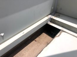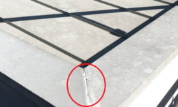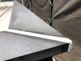 ⇧屋根はガルバリウム鋼板で、ジョイント部分がコーキングの処理だけで薄っすら付いていただけでしたので、長く持つようにちょっと盛らせて頂きました。