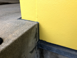 ⇧土間の部分は外壁側に水が流れる仕組みになっているので仕方ないですが、出来るだけ外壁側に行かないようにコーキングで予防させて頂きました。