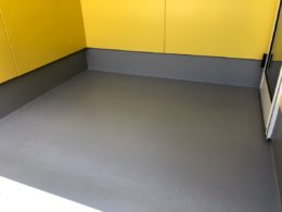 ⇧ベランダの床はFRP製でしたが一部剥離がありましたので、補修後に3回塗りで仕上げました。