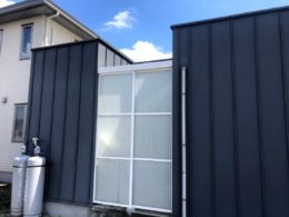 ガルバリウム側は高圧洗浄だけでサイディング側は塗装させて頂きました。