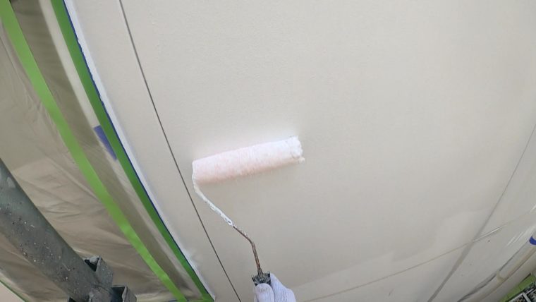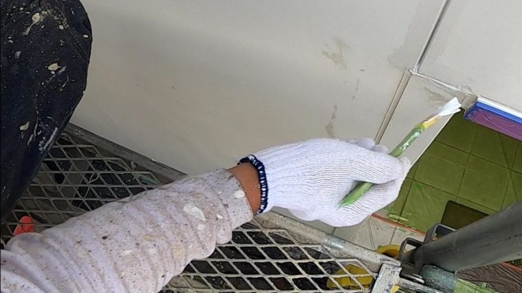 ⇧下塗りが白で元の外壁も白なので分かりにくいですが、しっかり塗装しています