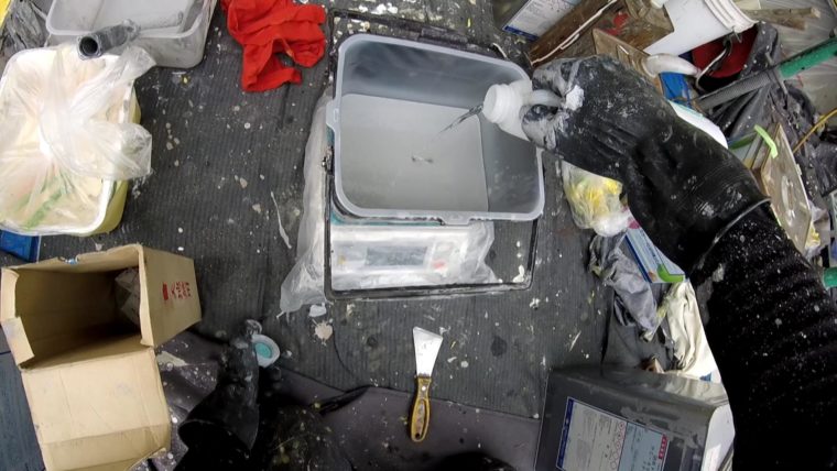 このFRP塗料は希釈を慎重にしないと危ないので慎重に・・・(・。・;