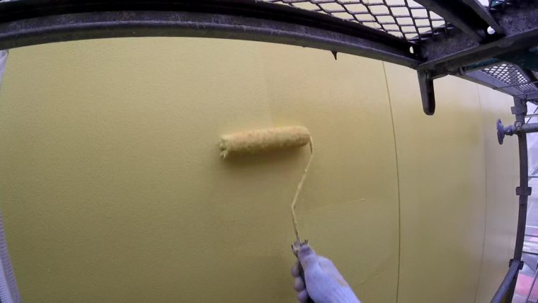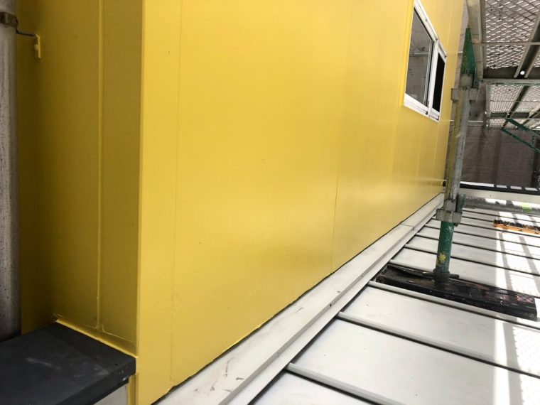 先日は外壁塗装の中塗りが終わりましたので、仕上げの上塗りをしていきます。