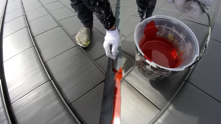 ⇧大屋根の谷部分ですがお客様の希望でしたのと色あせが目立ちましたので塗装してます。