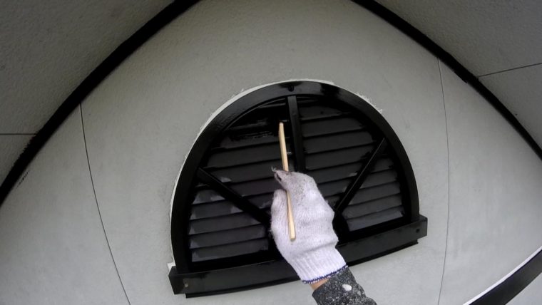 ⇧屋根裏の風窓部分はプラスチックですが色褪せていましたので塗装します。