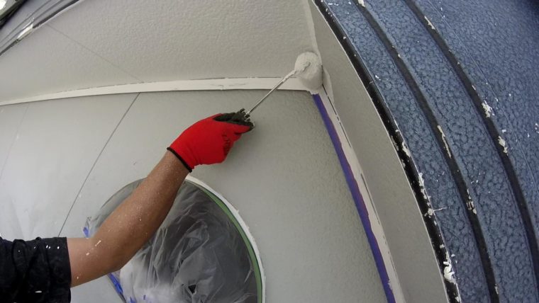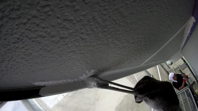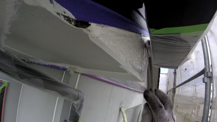 今回は軒天という屋根の裏側のパネルの事で雨にあまりかからないので痛みにくい箇所ではありますが、湿気を受けやすくカビが繁殖しやすい部位になりますので、塗料も外壁とは違う防カビ材入りの塗料を使うことが多いです。