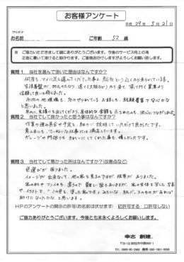 早目に見積もりを出してくださり、具体的な金額を示されたのも、決心に繋がりました。