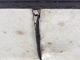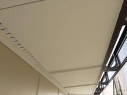 軒天のめくれがひどかったので、椹木で押さえコーキング