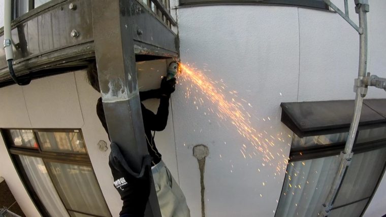 ⇧いらないボルトがでていたのでサンダーでカットです、ほんとに謎のパーツが多い家ですね・・・(;^ω^)