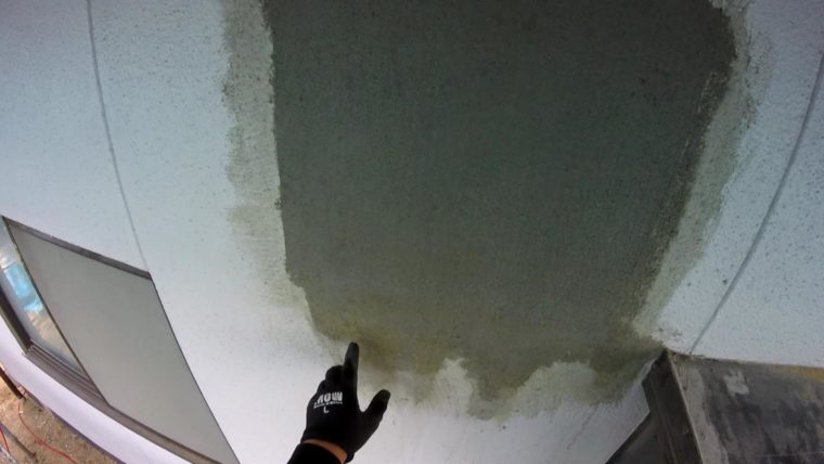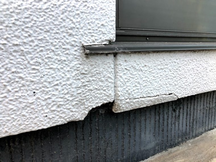 ⇧この外壁の欠損は、モルタルの外壁で年数が経つ家ではよく見られます、ぱっくり割れてます。