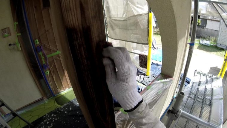 ⇧少し木部の目地が露出しているのでしっかり塗装していきます。