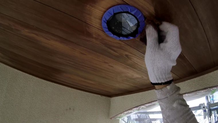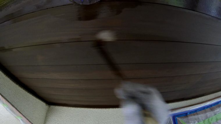 今回は玄関先の軒天が木部なので浸透性の塗料で仕上げさせていただきます。