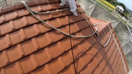 ⇧屋根は瓦でしたが小口部分に汚れが付いていたので小口部分を洗浄させて頂きました。