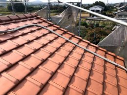 ⇧太陽光の配線が固定金具が朽ちてばらけていましたので、ステン金具でしっかり固定しました。