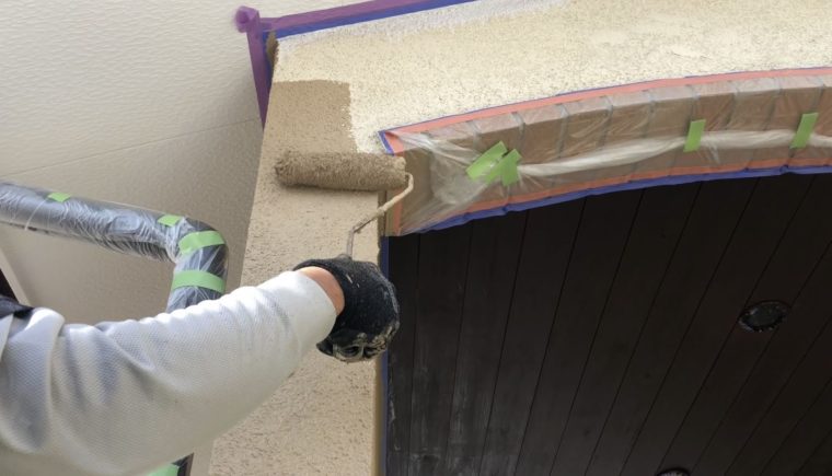 ⇧中塗りと同じようにもう一度塗装していきます、この塗料は粘土を付けて塗装をするので小さな凹凸に入りにくいのでしっかりじっくり塗装していきます。⇧この塗料はコテなどでも仕上げれますが今回はローラーで仕上げました(*^-^*)