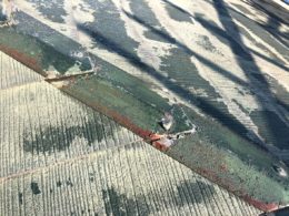 ⇧棟板金は塗膜が剥離してサビが結構出ていました、2液の錆止めでしっかり下塗りを入れさせて頂きました