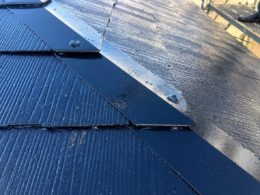 ⇧今回の屋根はスレート屋根だったので雨漏り防止にタスペーサー工法をさせて頂きました