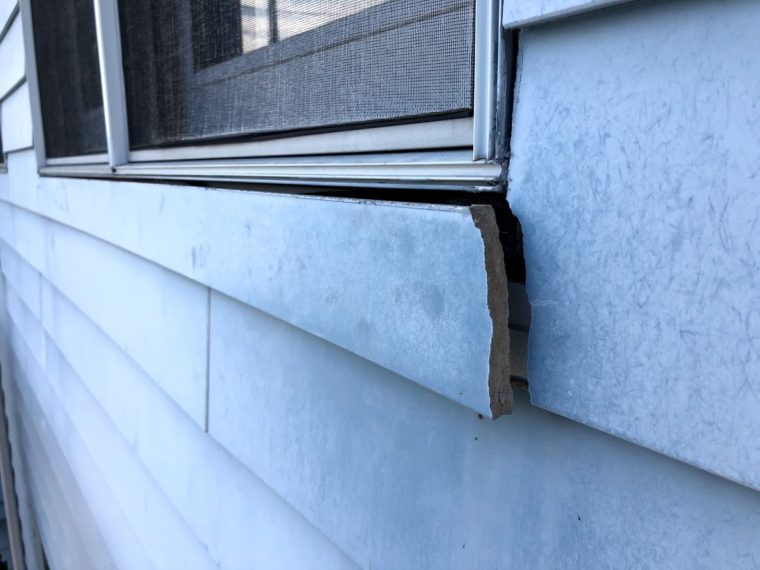 ⇧サイディングの劣化が進んでいくとダンボールのように朽ちていき、表面が欠落してしまいます(-_-;)