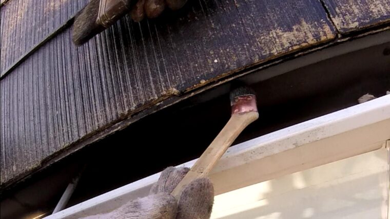 ⇧屋根の付け根の見えない箇所も雨が伝う可能性があるのでしっかり塗装します