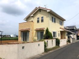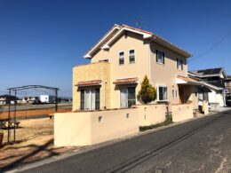 ⇧全体写真ですが、外壁の模様がある箇所は光触媒だったのでそれ以外の外壁を塗装させて頂きましたが、依然と若干近い色ですがプロバンス風のきれいな家に仕上がりました。