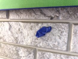 ⇧クリア塗装は外壁表面の汚れや傷がそのまんま出るので、色を調色してタッチアップをさせて頂きました。