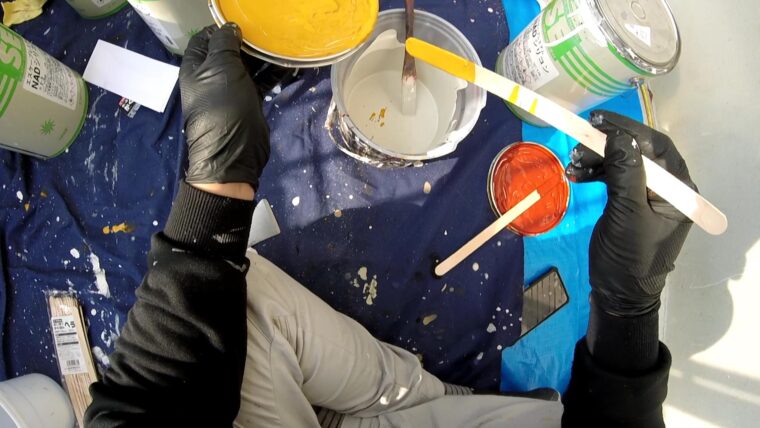 補修をする際に色を作って補修をしますがクリア塗装は補修をするにも補修箇所がそのまま出るので、今の外壁の色に近似値で色を作り、外壁表面のガラがさまざまあるため、色を作るのも大体3種類~4種類程作る必要があります。