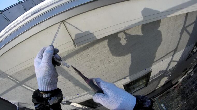 外壁塗装にクリアを塗装する為、外壁に亀裂や欠損がある場合補修をしてクリアを塗る必要があります。