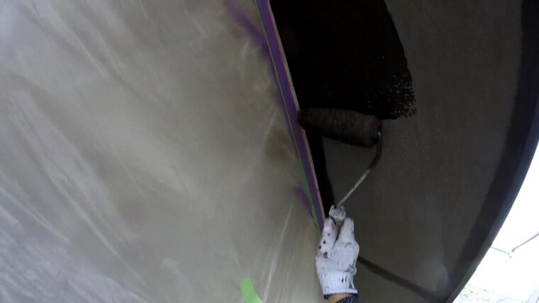 ⇧刷毛が終わればローラー(上塗り1回目)で仕上げていきます。
