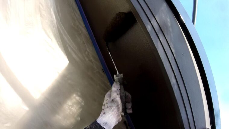 今回は色が濃いので分かりにくいですが、弊社では大体白系で仕上げる事が多いので1回塗りだと透けて見えるので必ず2回塗るようにしています。(まあどの塗装屋さんもやっていると思います)