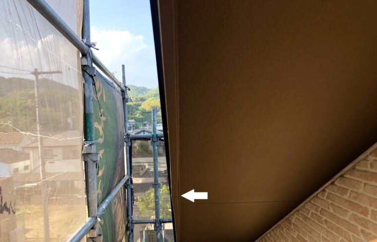 ⇧軒天を塗った際に破風側に塗料の返しが出来るので、しっかり伸ばしていきます。