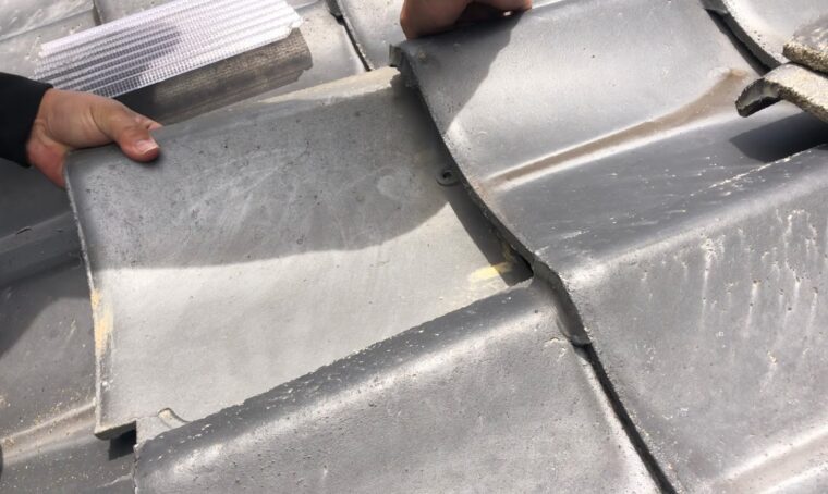 予備瓦は5枚くらいありましたが3枚使って残りは屋根塗装の色で塗って保管してもらいます。