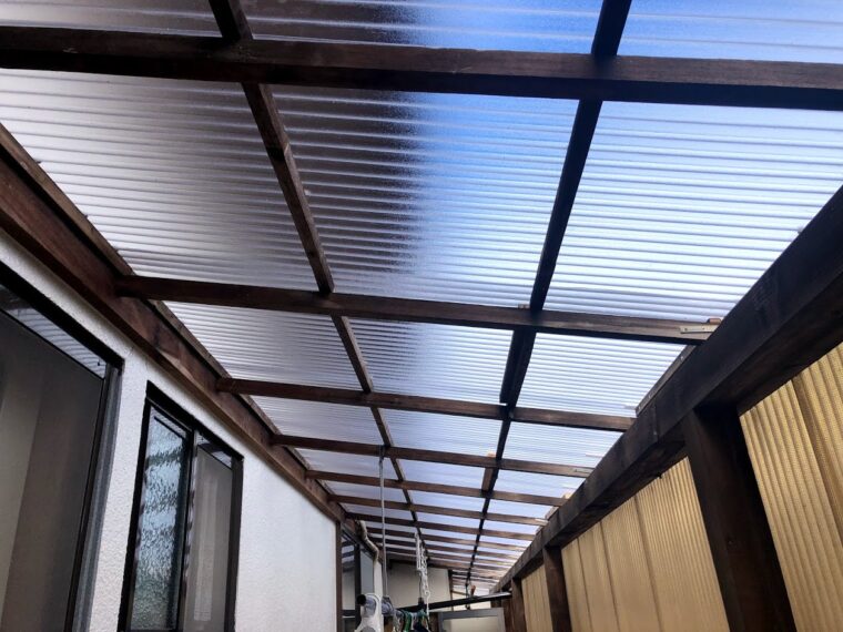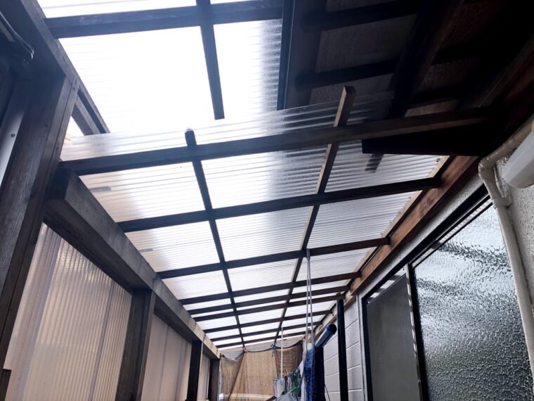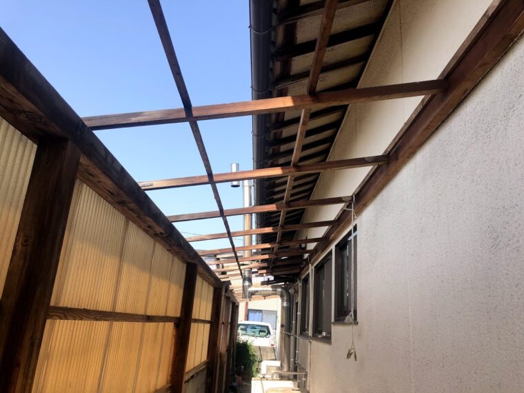 ⇧既存の波板を撤去後です、見た目は木部の腐食が分かりませんが作業していたら結構折れました(;^_^A