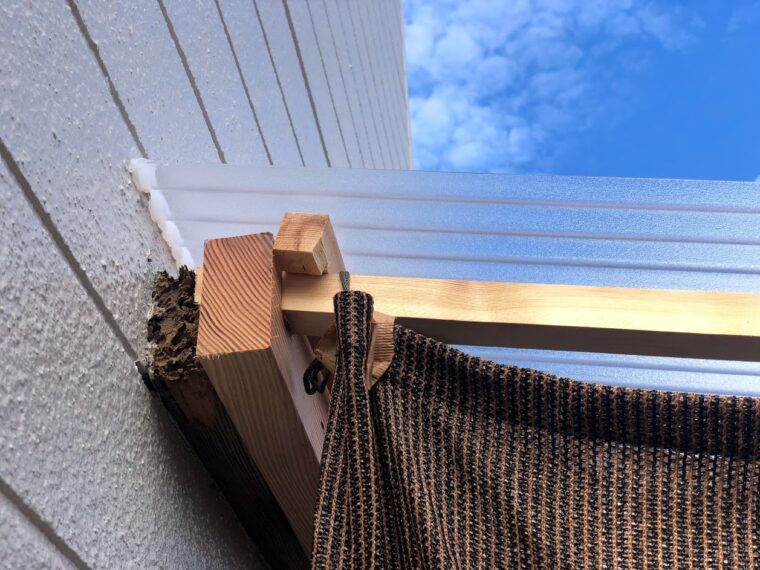 外壁塗装・屋根塗装工事が完了して工事前に波板を撤去していたので新たに波板張り替えと一部木部が腐いたので補強工事をさせて頂きました。
